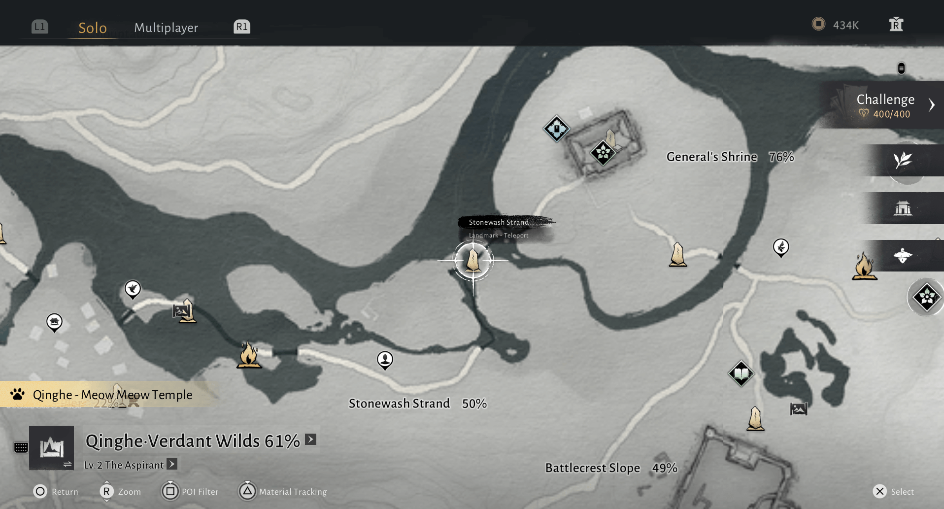 The first step is obtaining your fishing rod. You’ll naturally reach this location as you progress through the main quest, but if you didn’t grab the rod or want to start fishing early, you’ll need to travel to the Stonewash Strand Teleport in Qinghe Verdant Wilds. The exact map location is pictured below.
