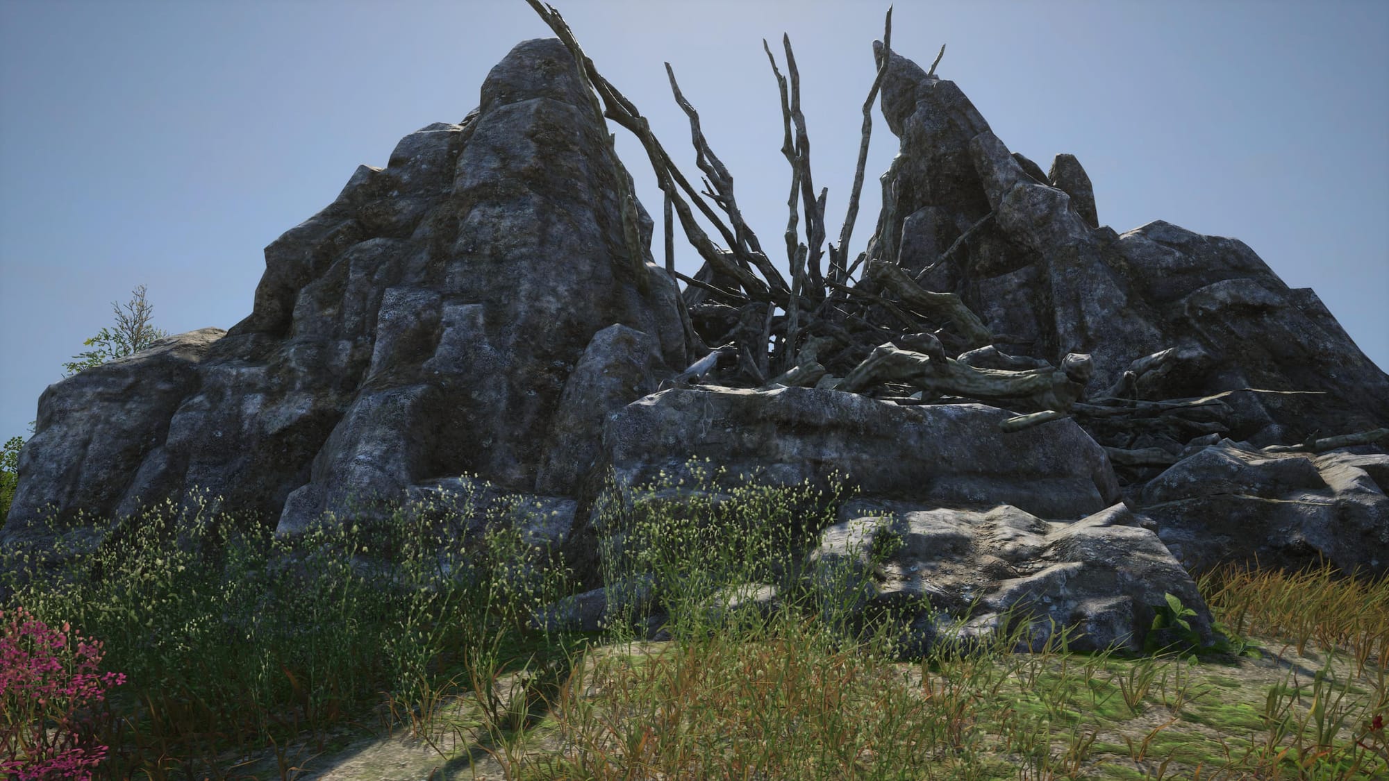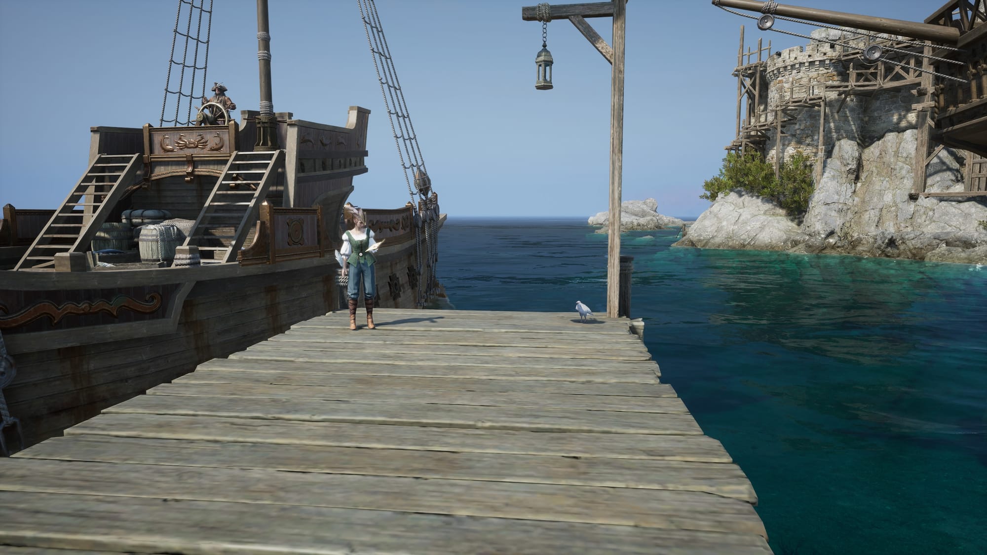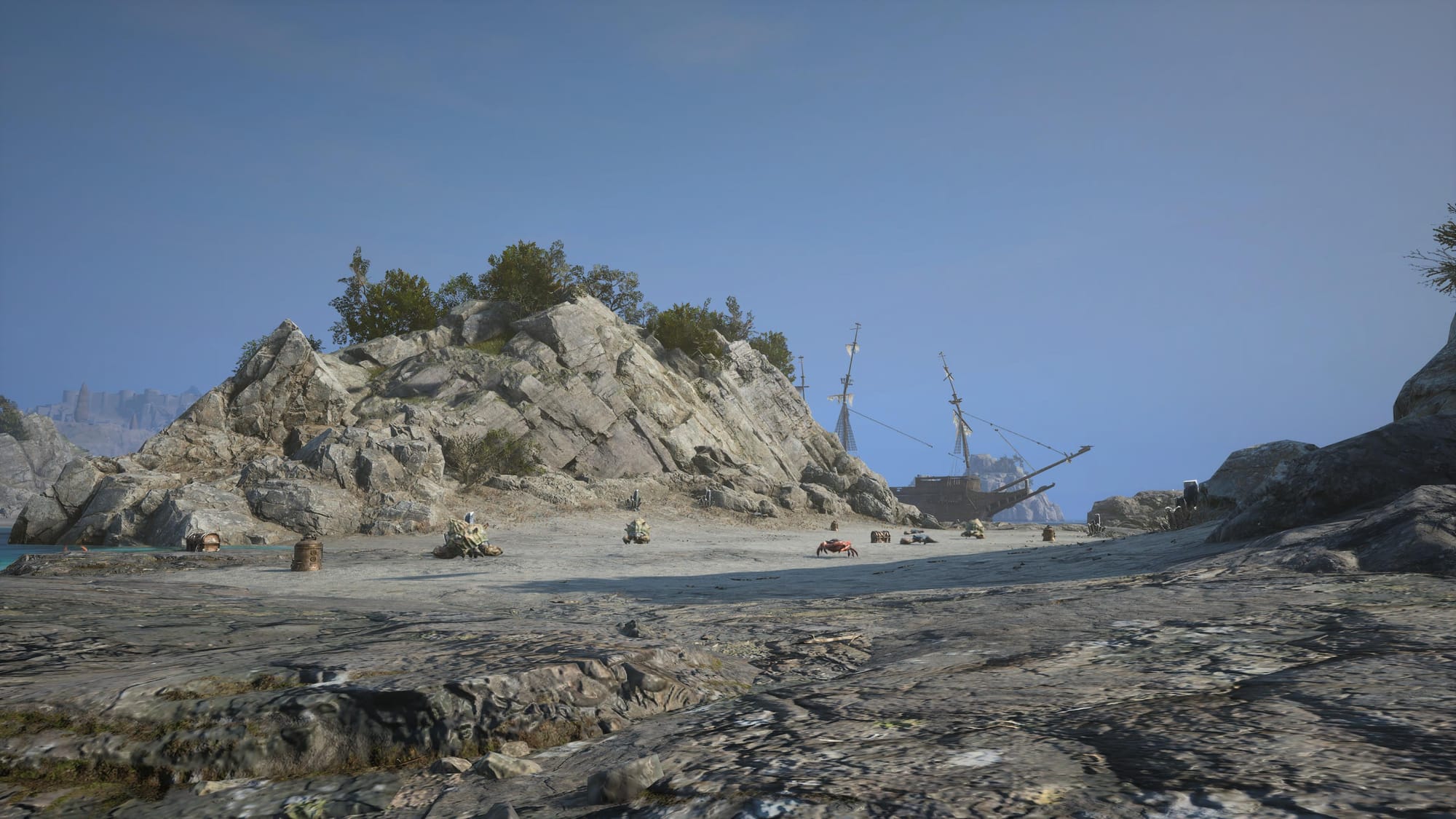 Then start traveling slightly southeast toward the Cursed Scar. Finding this crow was a bit tricky and took me quite some time to locate. As you head in that direction, look for a ship next to a giant rock. The image below shows exactly what you should be looking for.