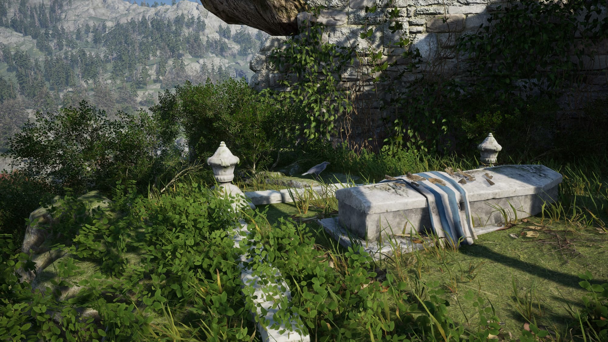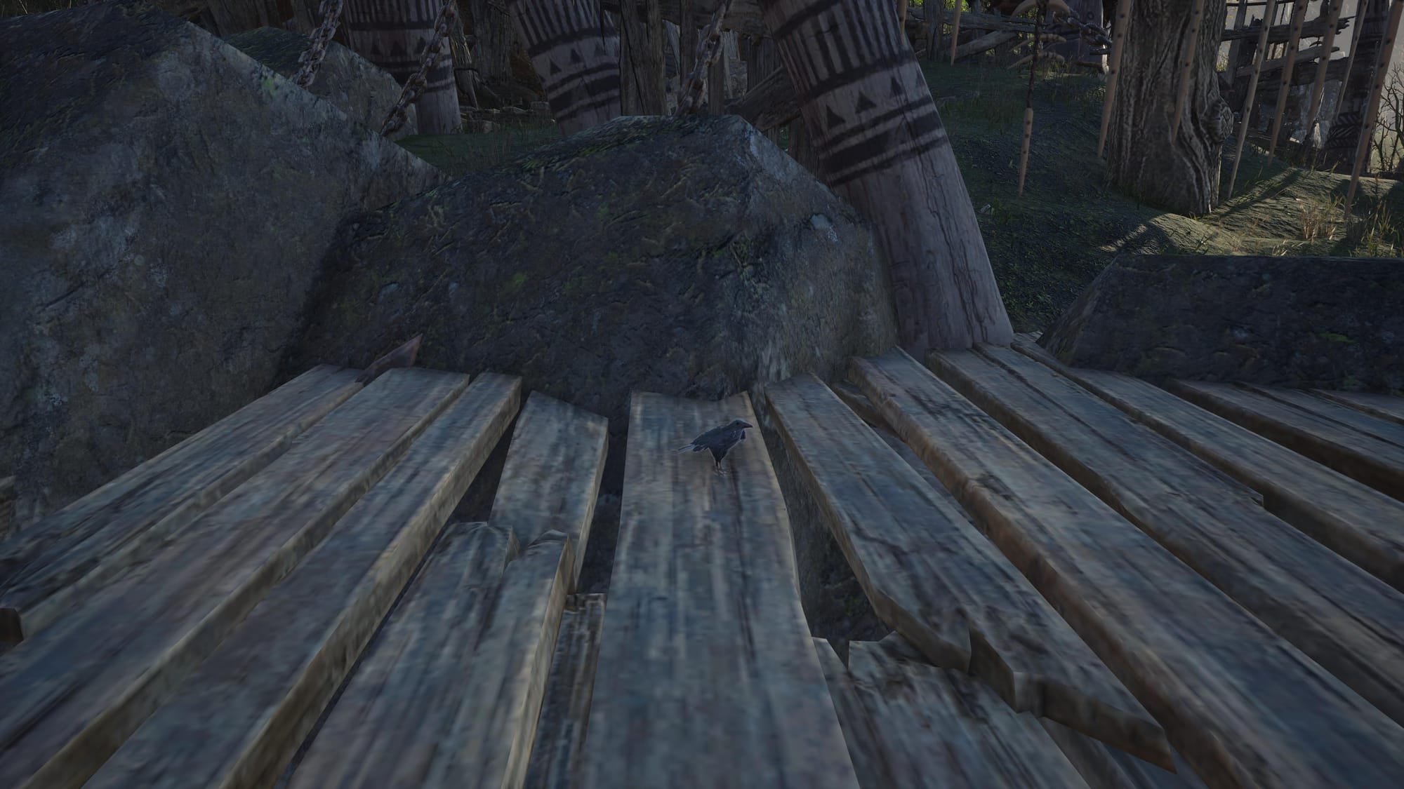 Once you see this, you’ll need to get to the top of the rock. I just kept jumping until I reached the top. It’s a bit annoying, but you’ll eventually make it up there! The exact map location of the crow is pictured below.