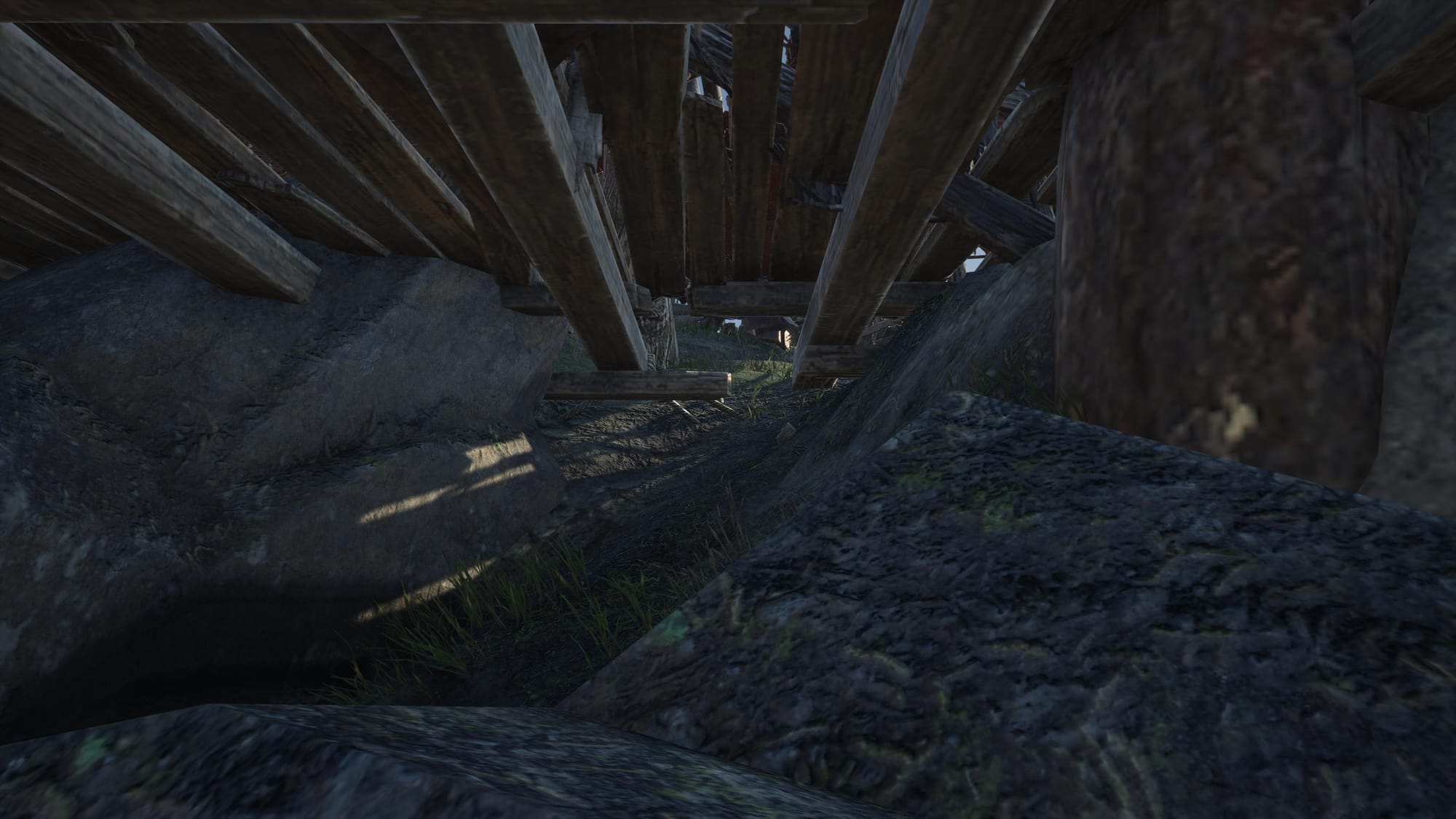 Once you have successfully flown across, jump up the rock in front of you. This will place you directly underneath the top wooden platform. From here, I morphed and went through the small gap that was there. The image below shows what you should be looking for.