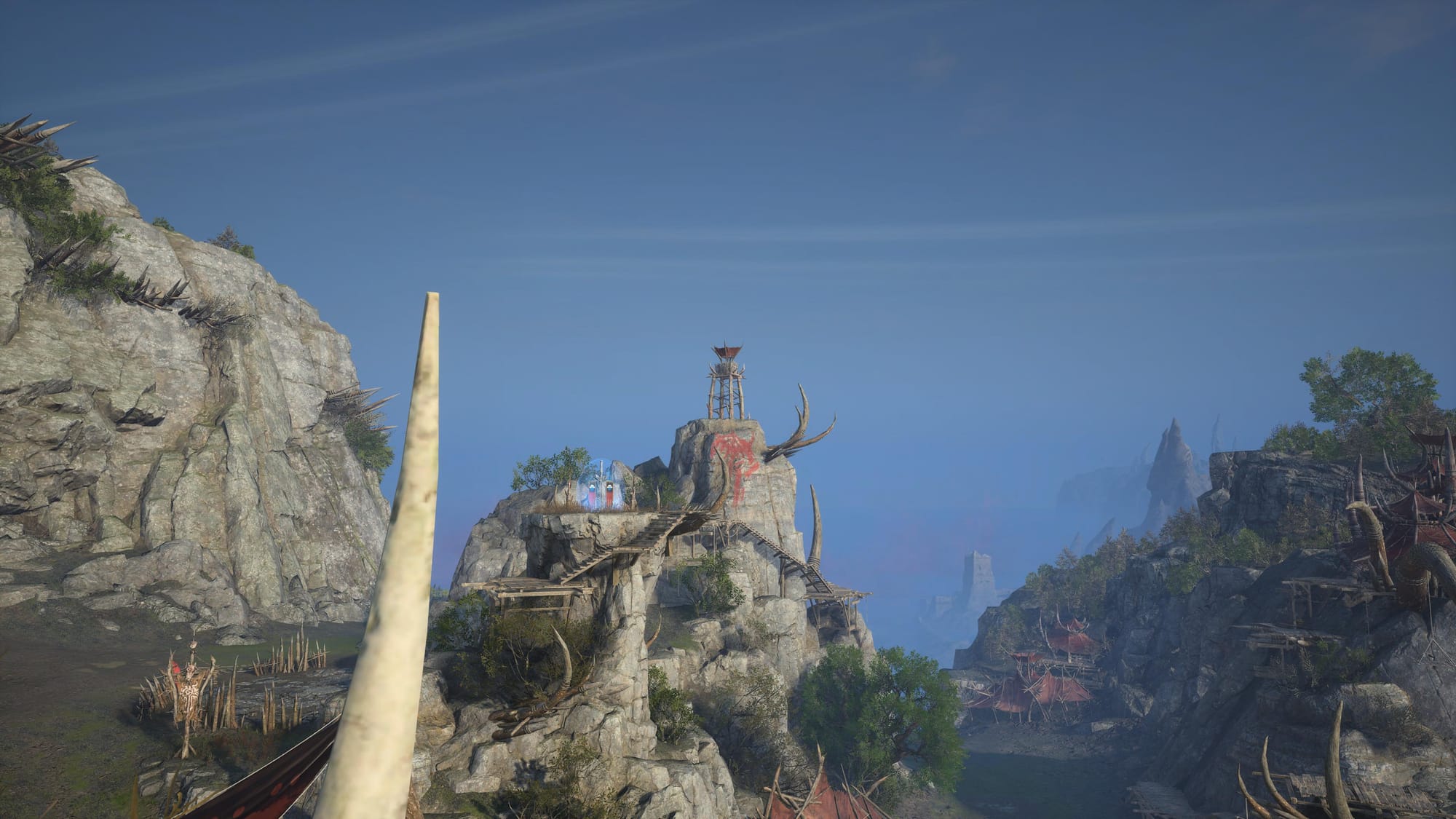 From the waypoint, look directly north and you will see a large raised rock with a guard's post on top. The image below shows what you should be looking for.
