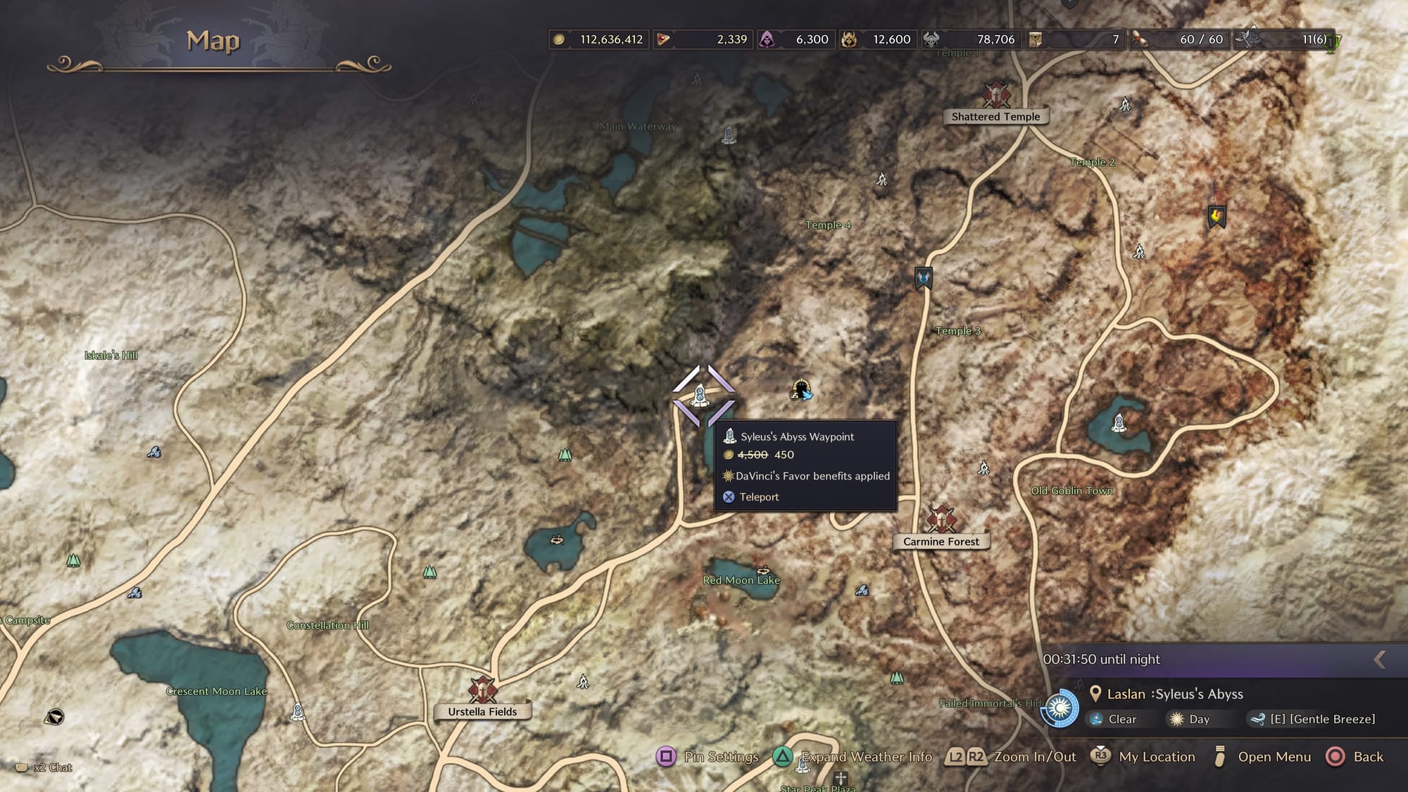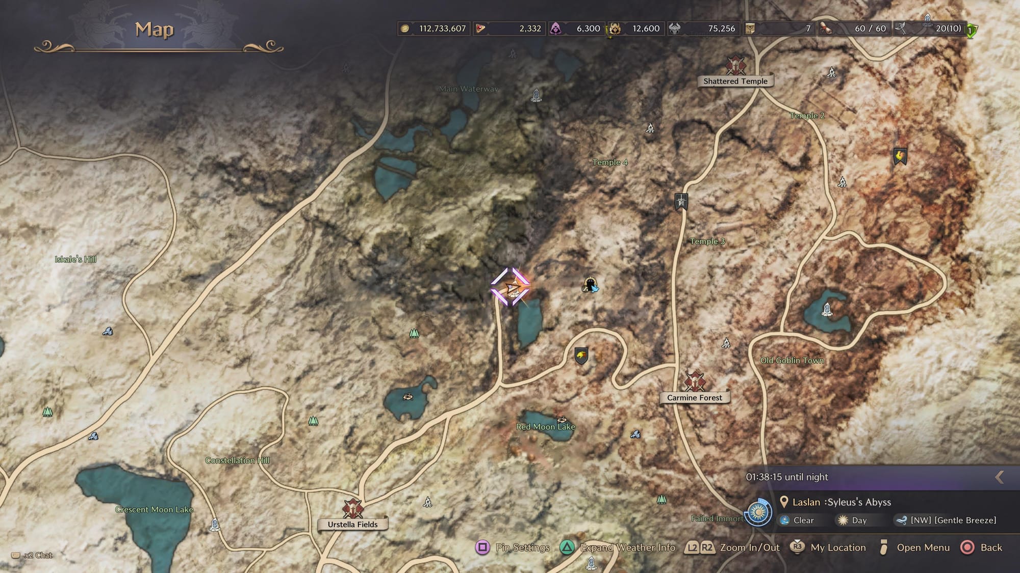 Next on the list is Carmine Forest. Pull up your map and travel to the Syleus's Abyss Waypoint northeast of Crescent Moon Lake.