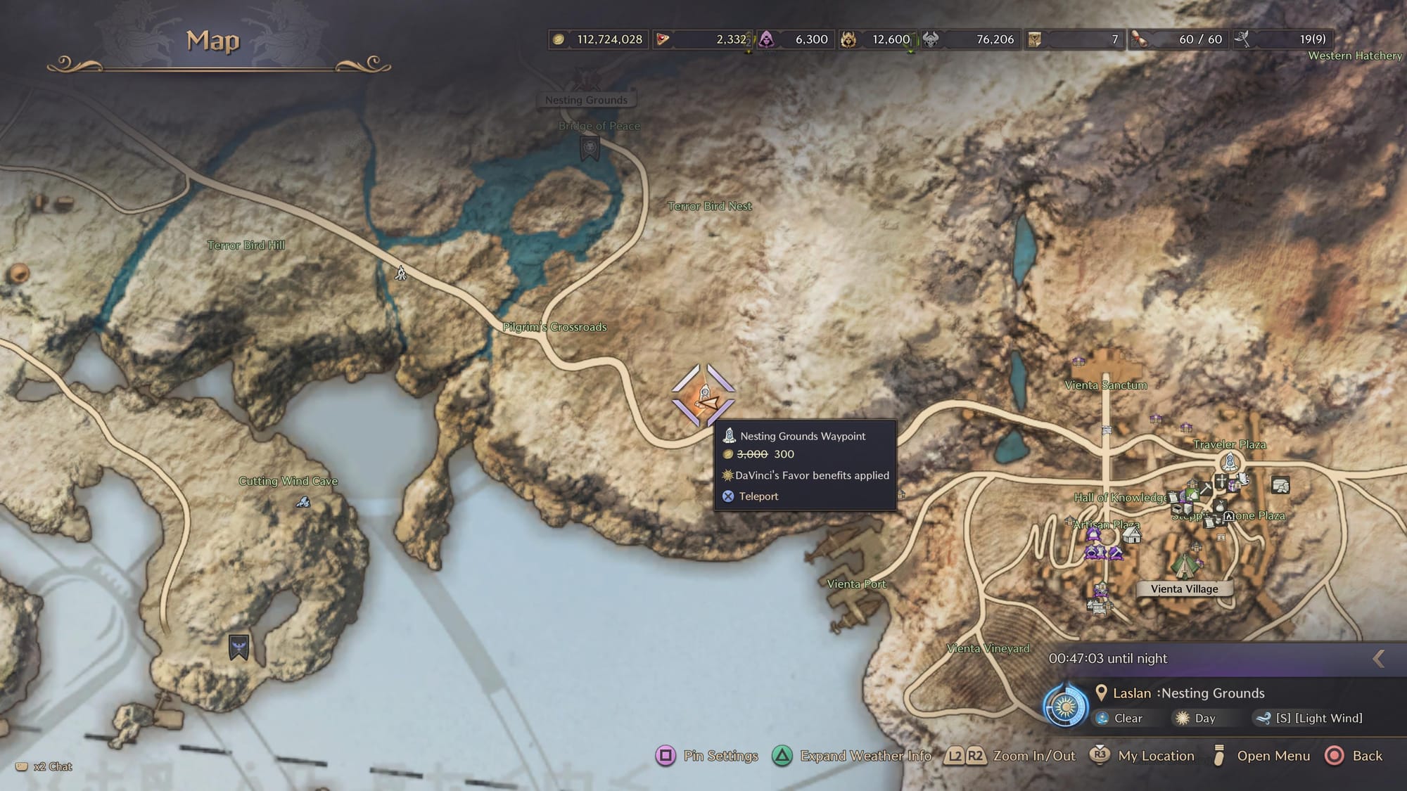 Next on the list is the Nesting Grounds. Pull up your map and travel to the Nesting Grounds Waypoint west of Vienta Village.
