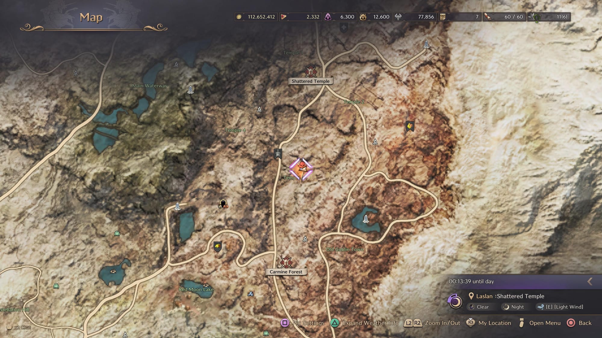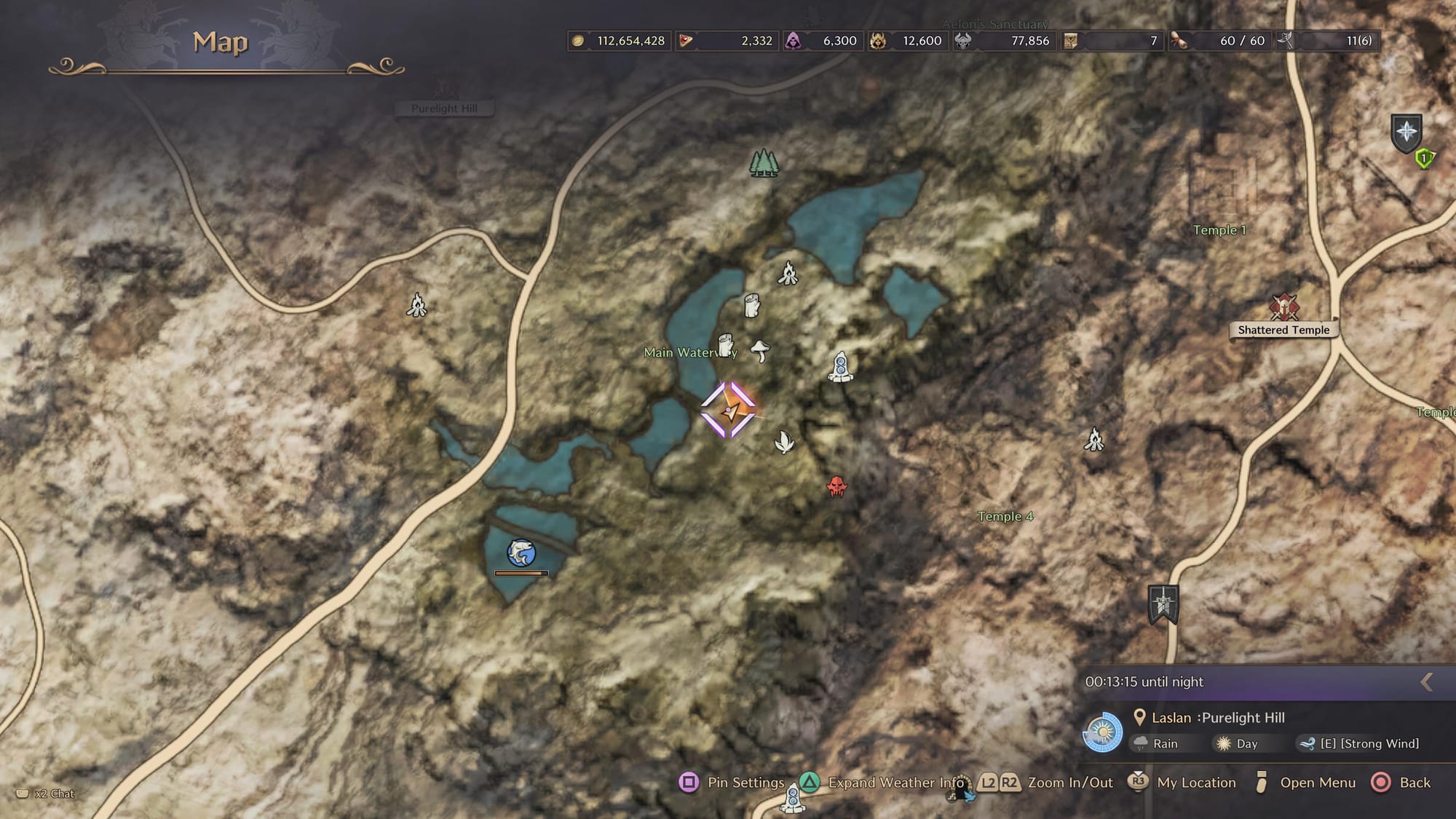 From here, begin traveling southwest towards Temple 3. The exact map location is pictured below.