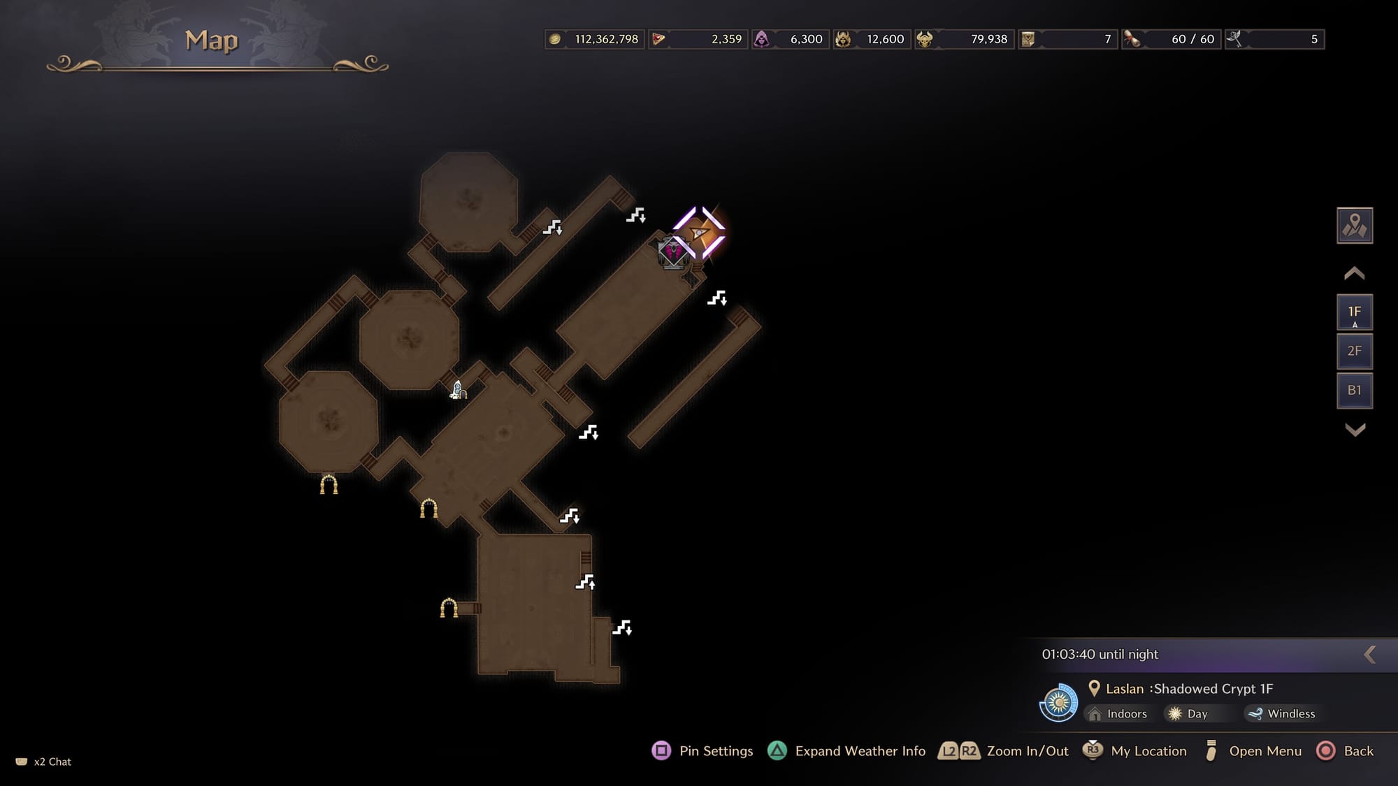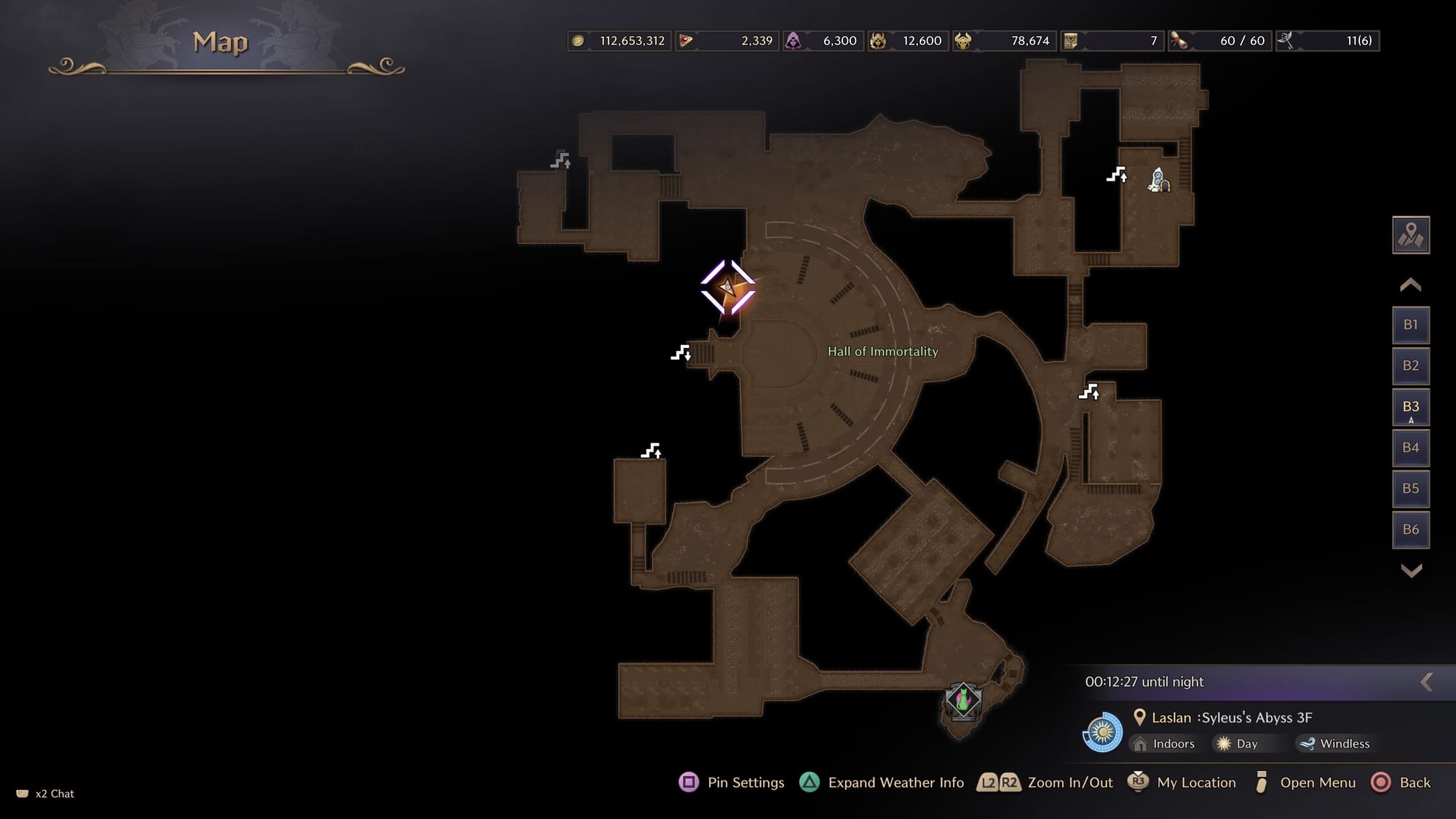 This one was a bit tricky and honestly quite annoying to find, mostly because there are six floors of Syleus's to go through. Go inside Syleus's Abyss. If you have already gone through and activated the teleports, go to the teleport stone next to the door on the first floor and teleport to the third floor. If you haven’t, you will need to travel down to the third floor to find this crow. Once you reach the third floor, head to the Hall of Immortality located in the center. It’s an auditorium-looking structure on the map. The exact map location is pictured below.