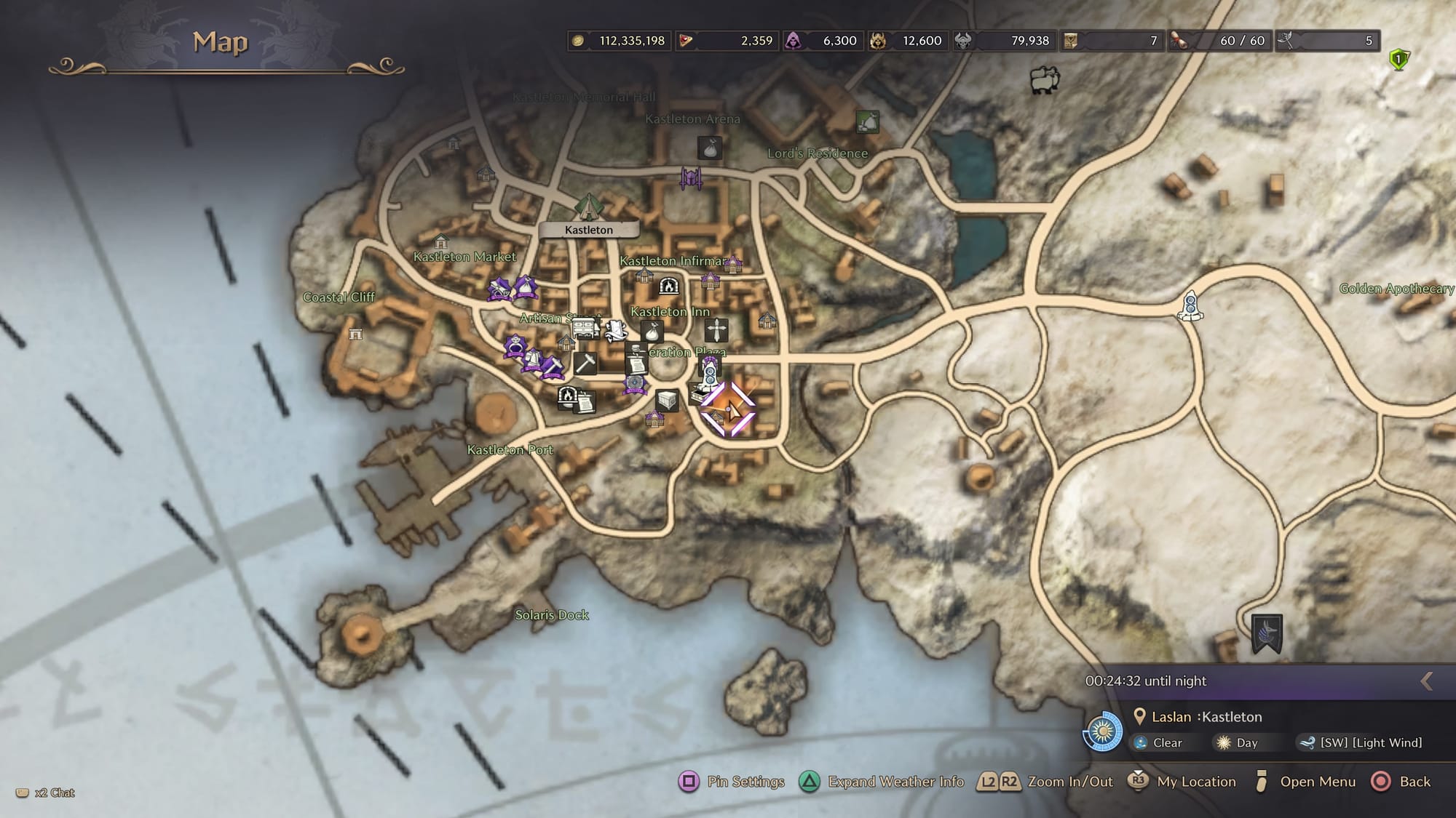 From here, begin traveling slightly southeast toward the Urstella Esplanade. The exact map location is pictured below.
