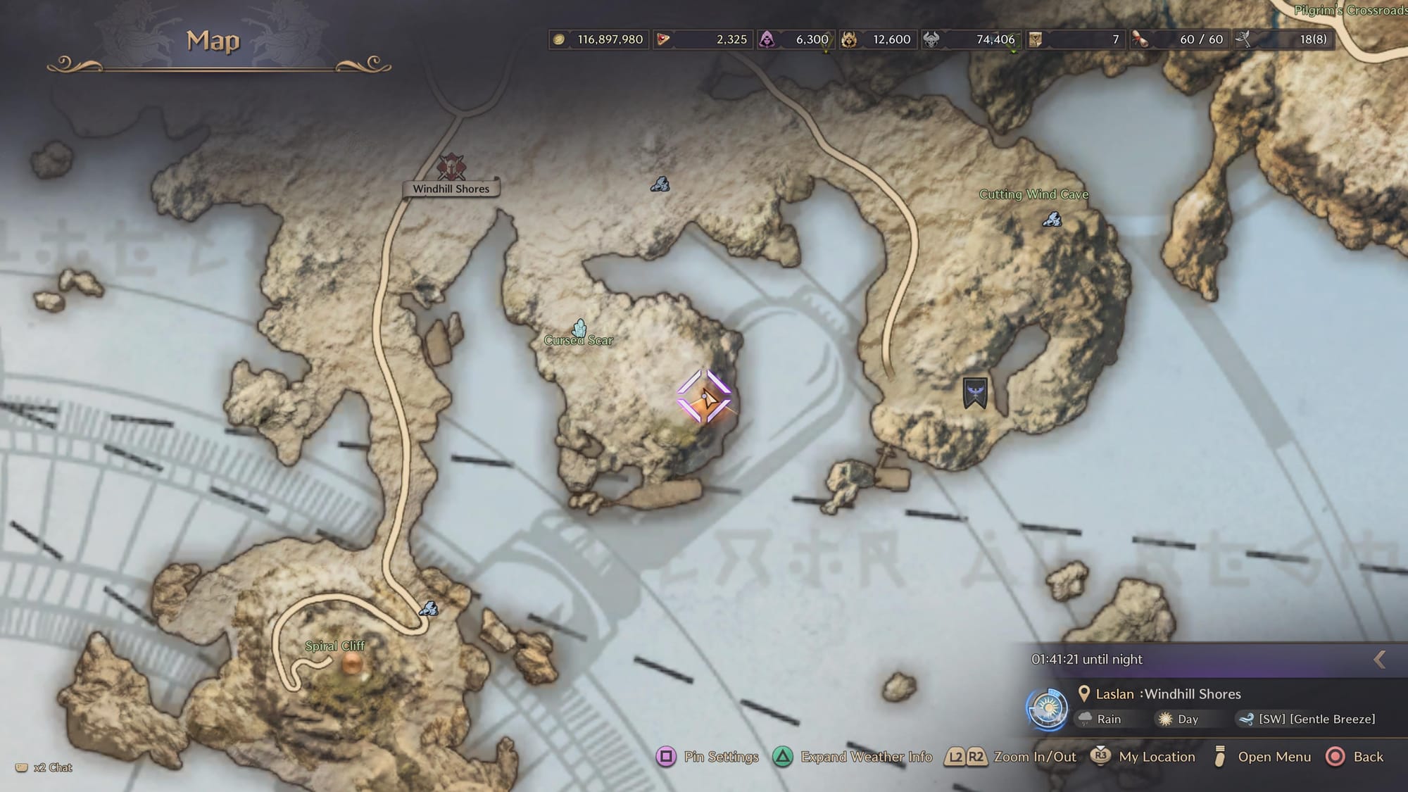 From here begin to travel slightly northeast. The exact map location is pictured below.