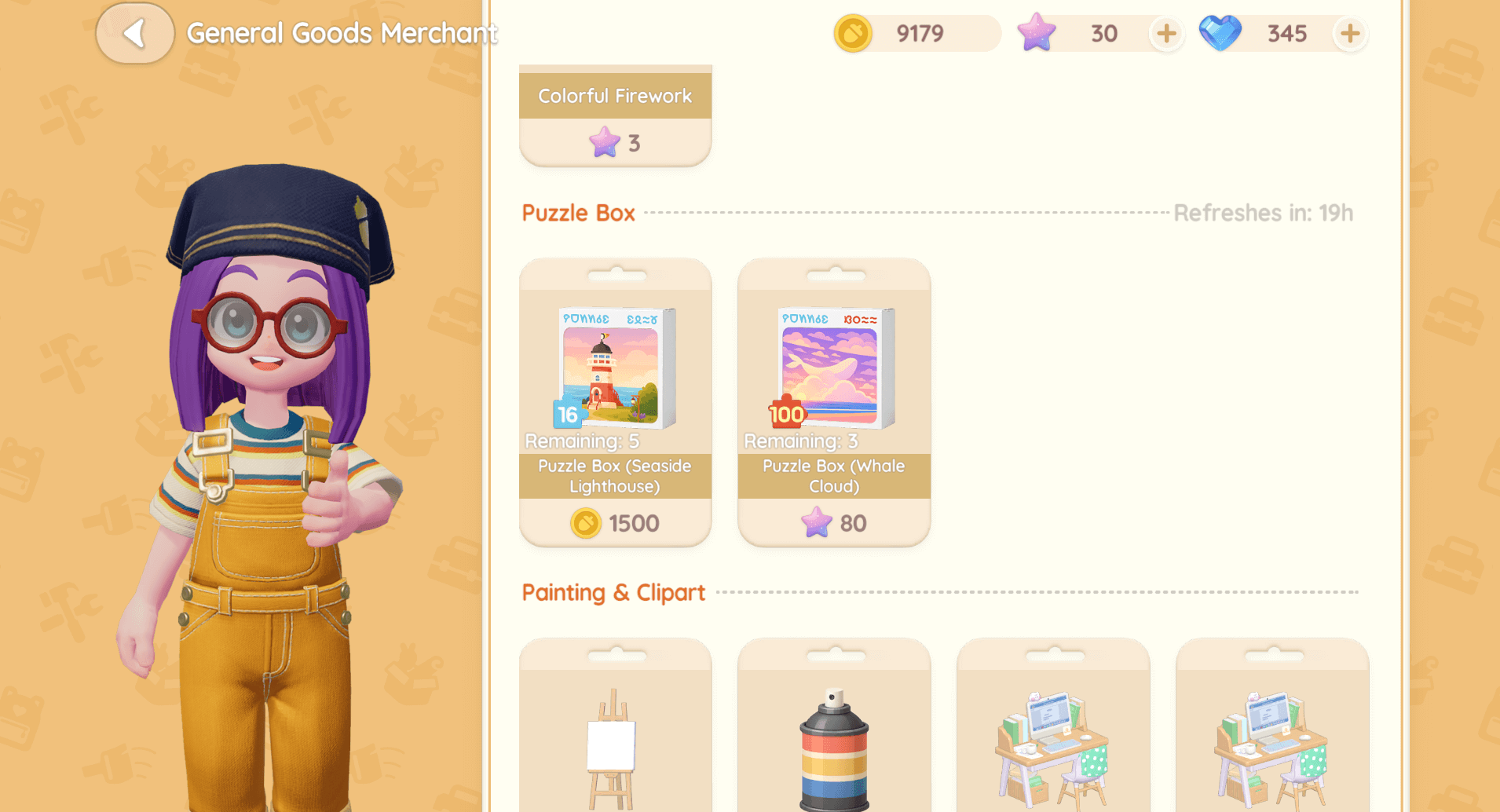 - Ka Ching – Buy puzzles, which reset daily. You can purchase one puzzle with gold and another with wishing stars.