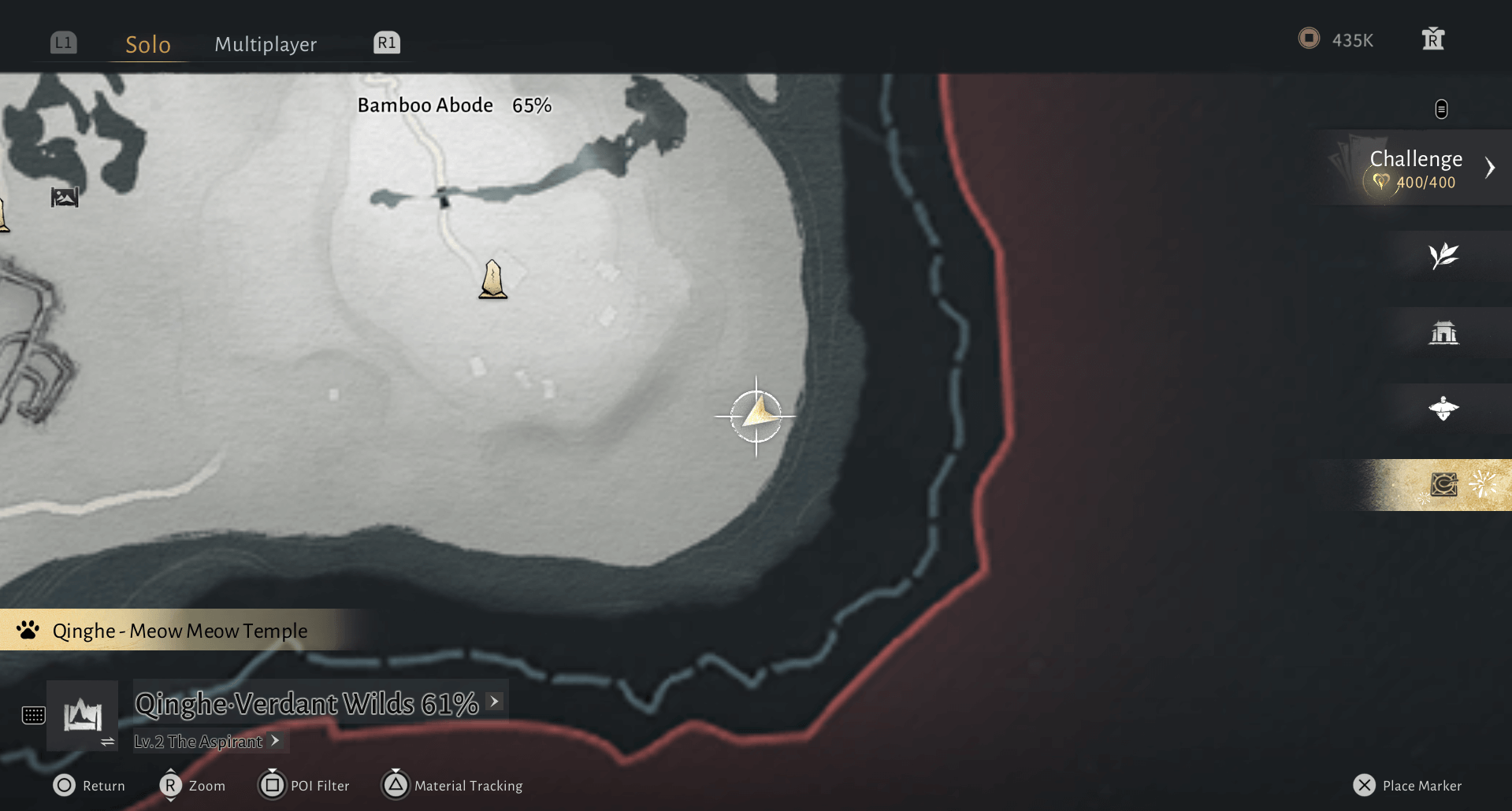 The first step is finding the start of this tale. You’ll want to travel back to where you first began the game in the bamboo forest. Teleport to the Bamboo Retreat. The exact map location is pictured below.