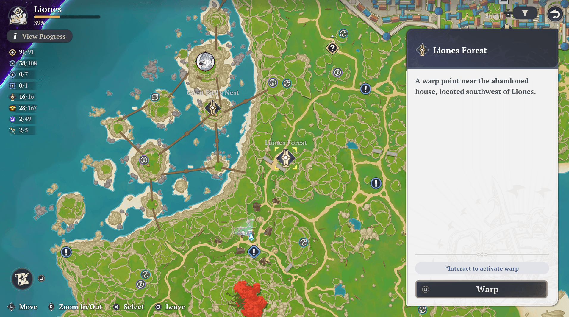 Each region has a set number of Warp Points to find and activate. These act as your fast travel system and make traversing the map much easier once they are all unlocked.