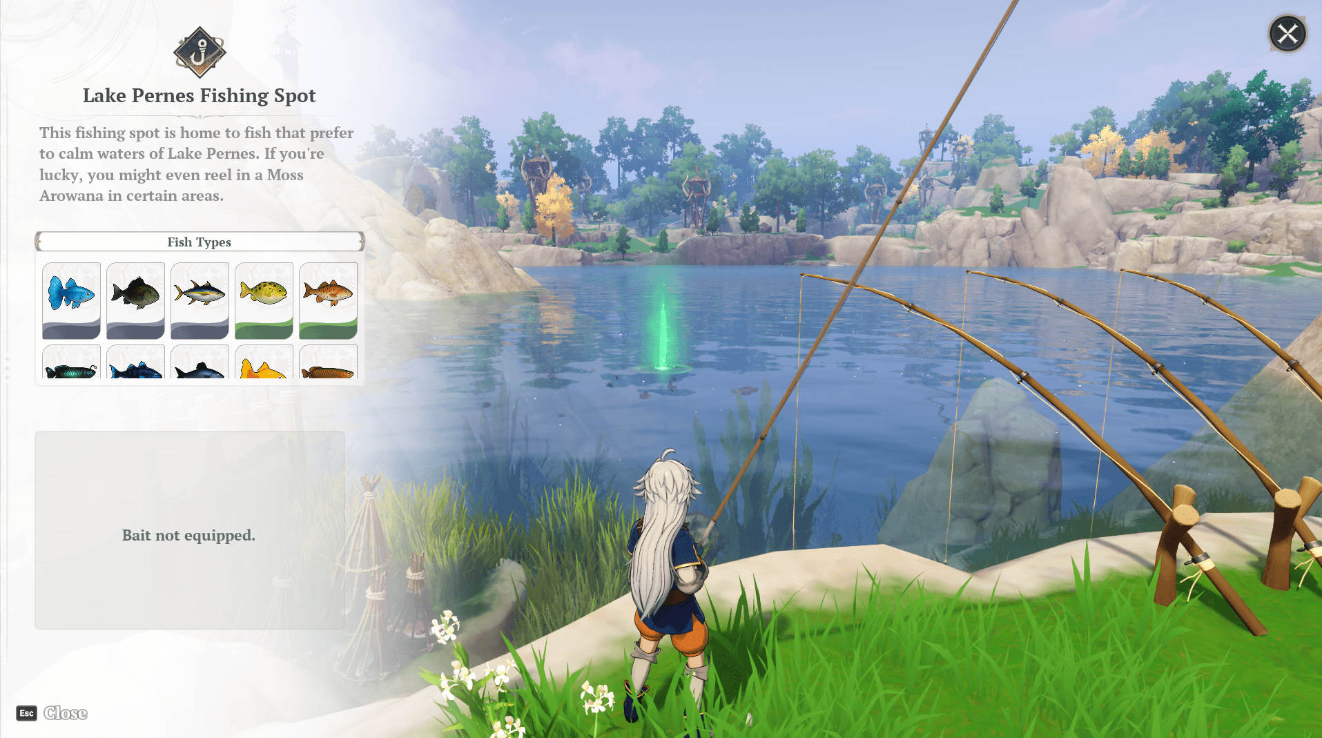 You can begin fishing at any moment, but I recommend following The Fear of Water quest to help give you more insight into how to fish. You can find this quest by traveling to Lake Pernes and heading to the location shown on the map below.