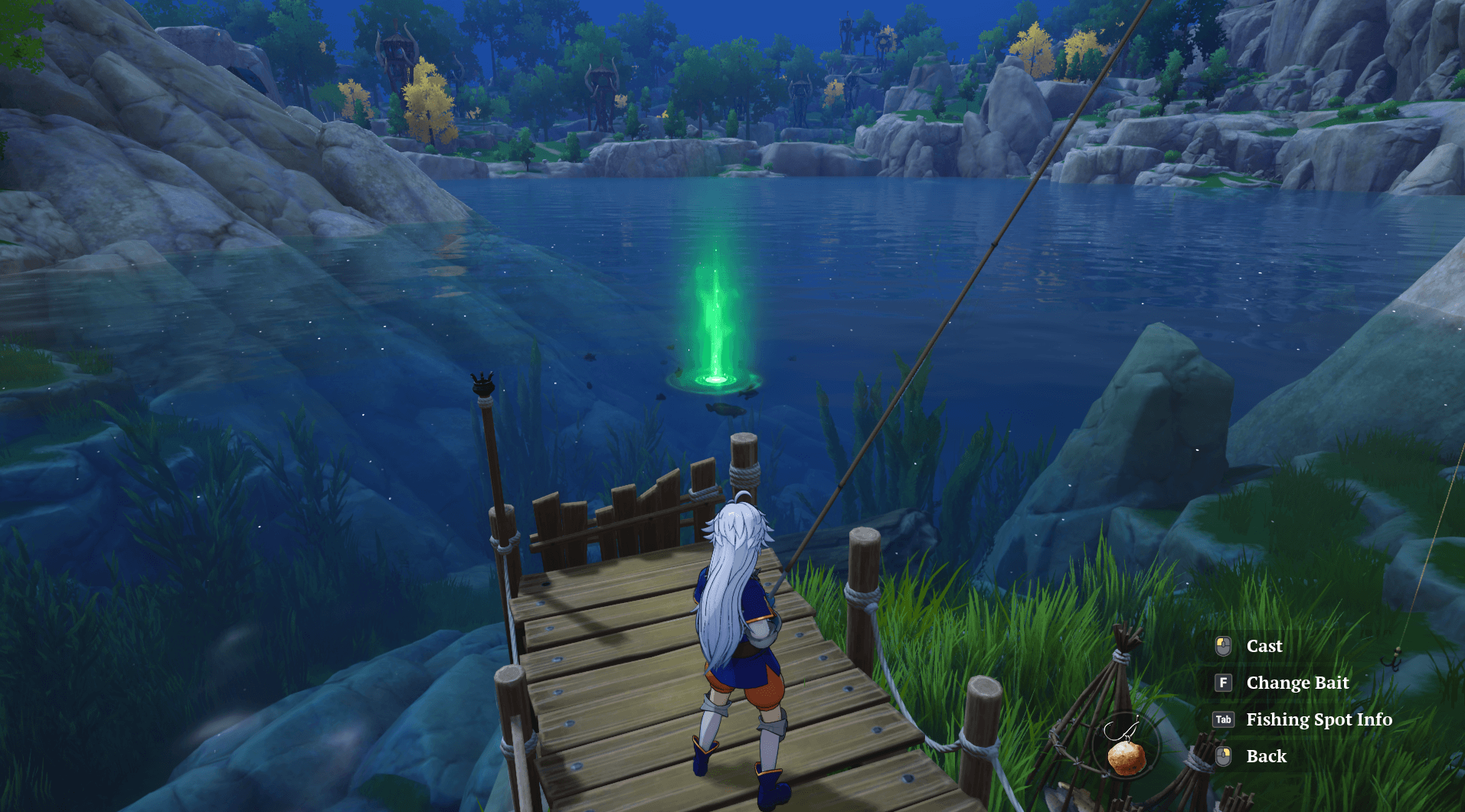 Once you have your bait selected, you can begin fishing. Move your cast around to find an optimal spot, then go ahead and cast your line.