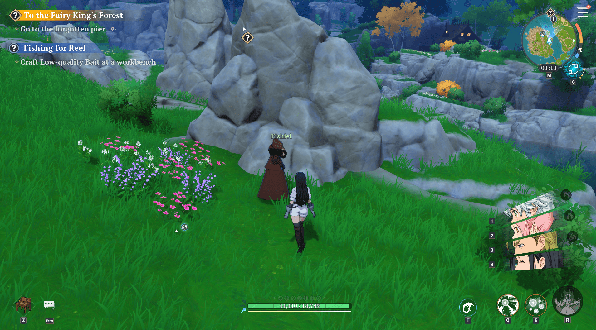 When you arrive, you will be looking for an NPC by the name of Fishiel. This is the NPC you are looking for.