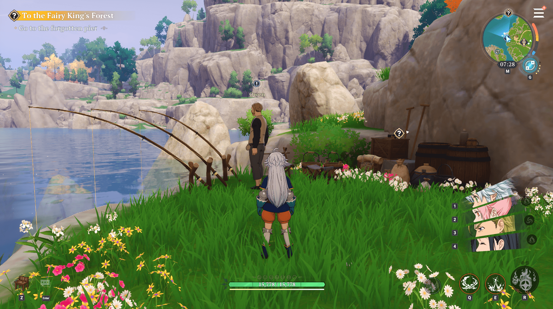 Fishiel will have you go talk to Owen. Follow the quest marker, and it will lead you directly to him.