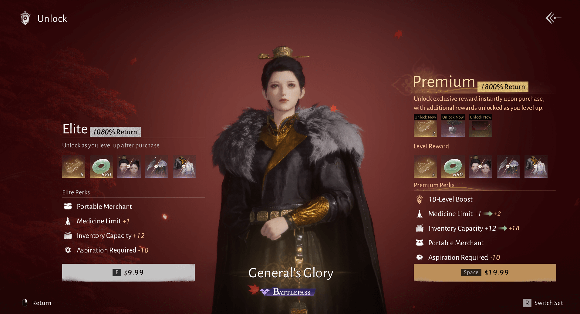 Elite 1080% Return ($9.99) These items unlock as you level up after purchase: